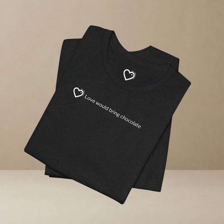 Love Would Bring Chocolate Tee. What would love do? Love would bring chocolate.A simple statement for people who know. Easy to wear, easy to gift, and right at home anywhere sharing is part of the plan.
